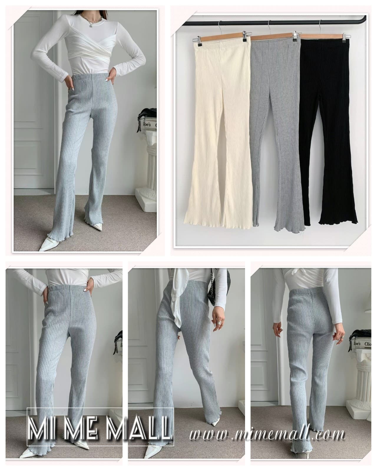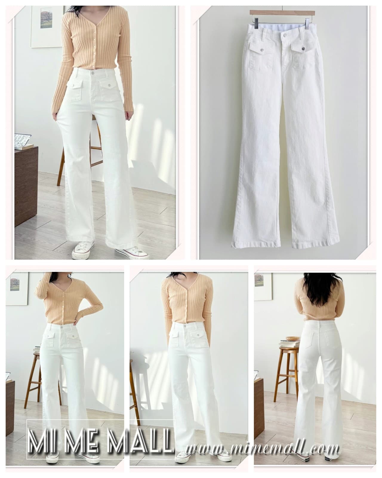 FL#387 前袋橡根腰白色喇叭褲