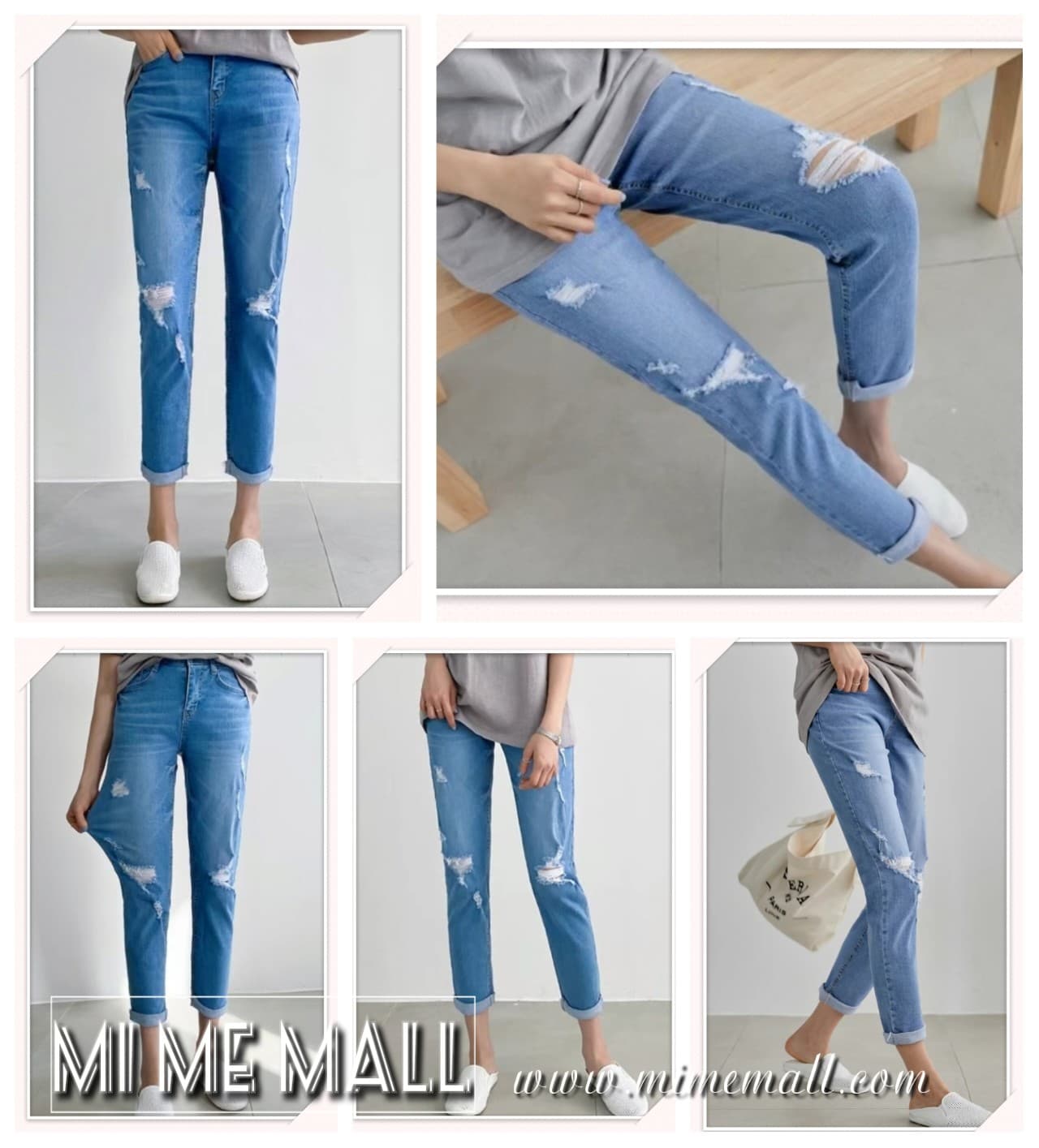 FL#228 橡根腰石磨爛直腳牛仔褲